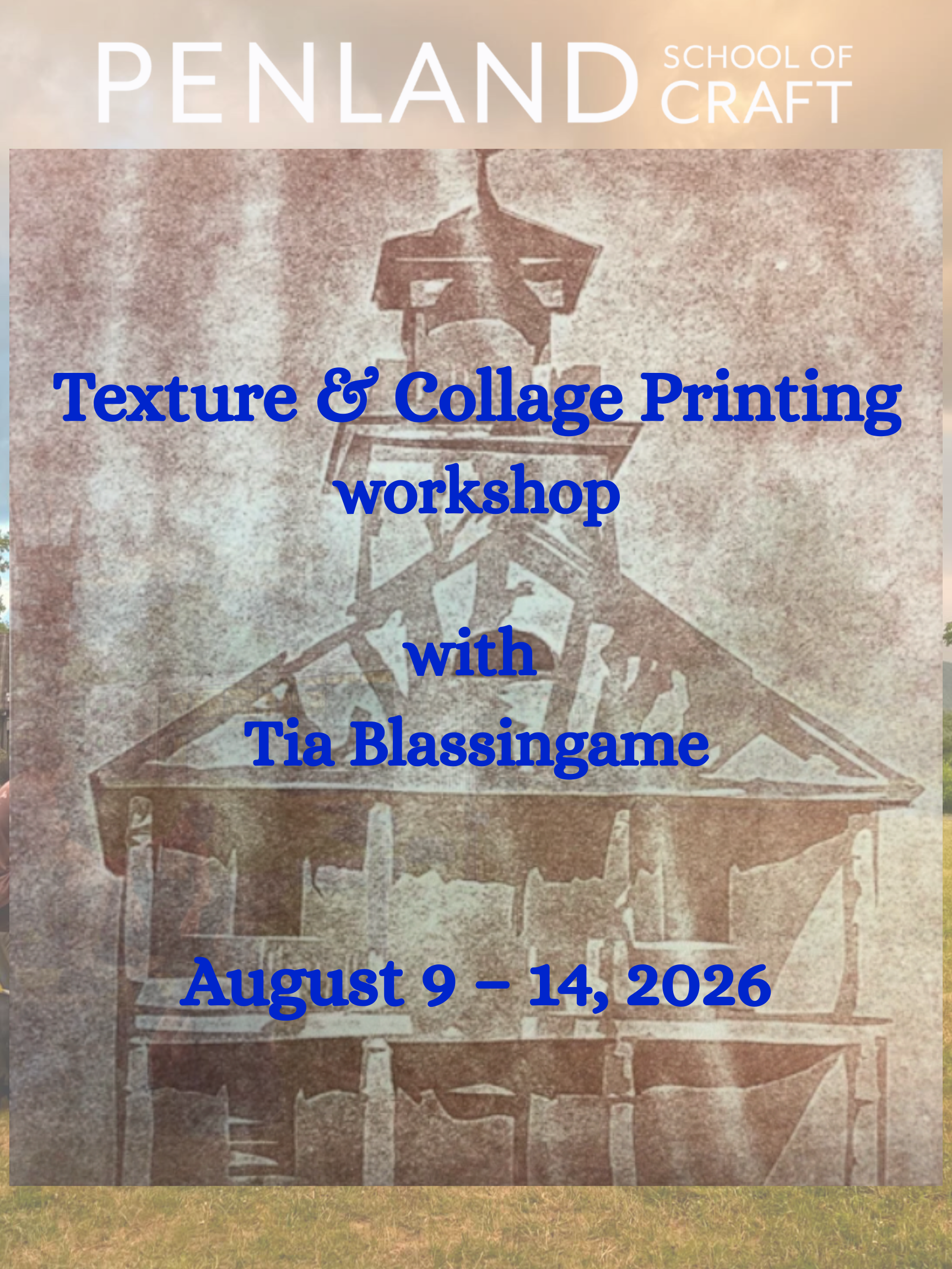 I’m teaching Texture & Collage Printing at Penland School of Craft, August 9 – 14, 2026! Explore bold textures, layered collage, and experimental printmaking in an immersive studio experience. Ready to expand your creative practice? Join me: bit.ly/4pZoCsH
